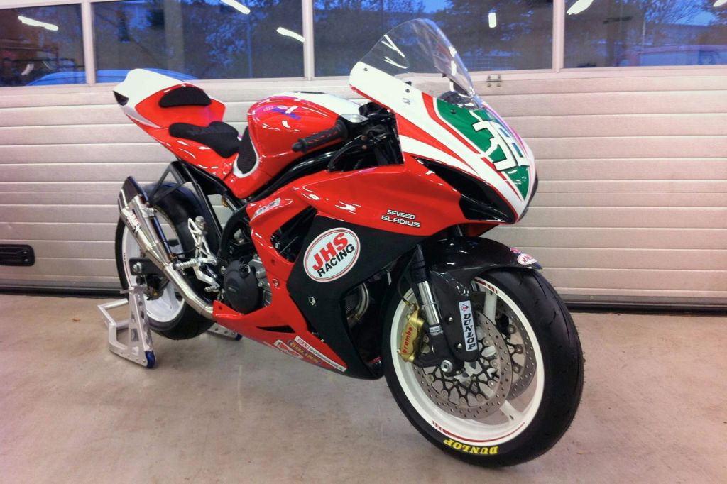 Für den markenoffenen Twin Cup im Rahmen der IDM bot die SFV650 beste Voraussetzungen. Mit ihren einfach abzurufenden 78 PS und dem Cup-konformen Technikpaket, das Fahrwerkskomponenten, Fußrastenanlage, Lenker und eine Verkleidung mit geschlossenem Bugspoiler umfasste, wurde die Gladius zu einem konkurrenzfähigen Renner.