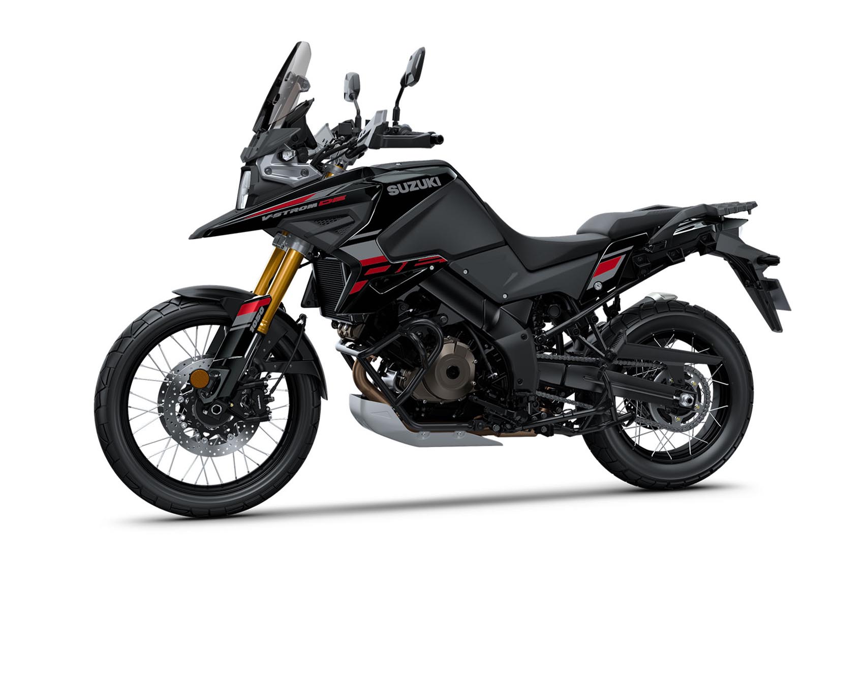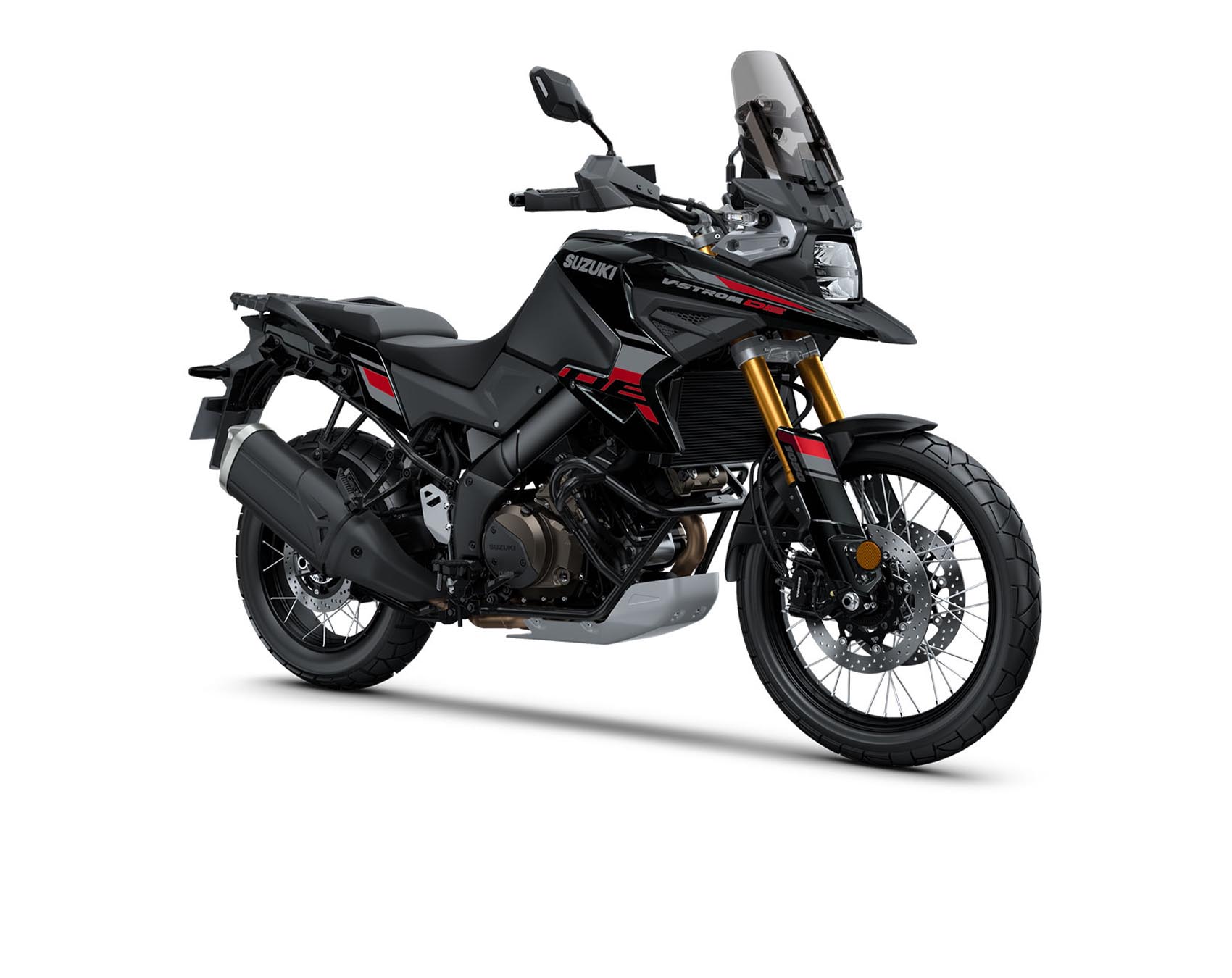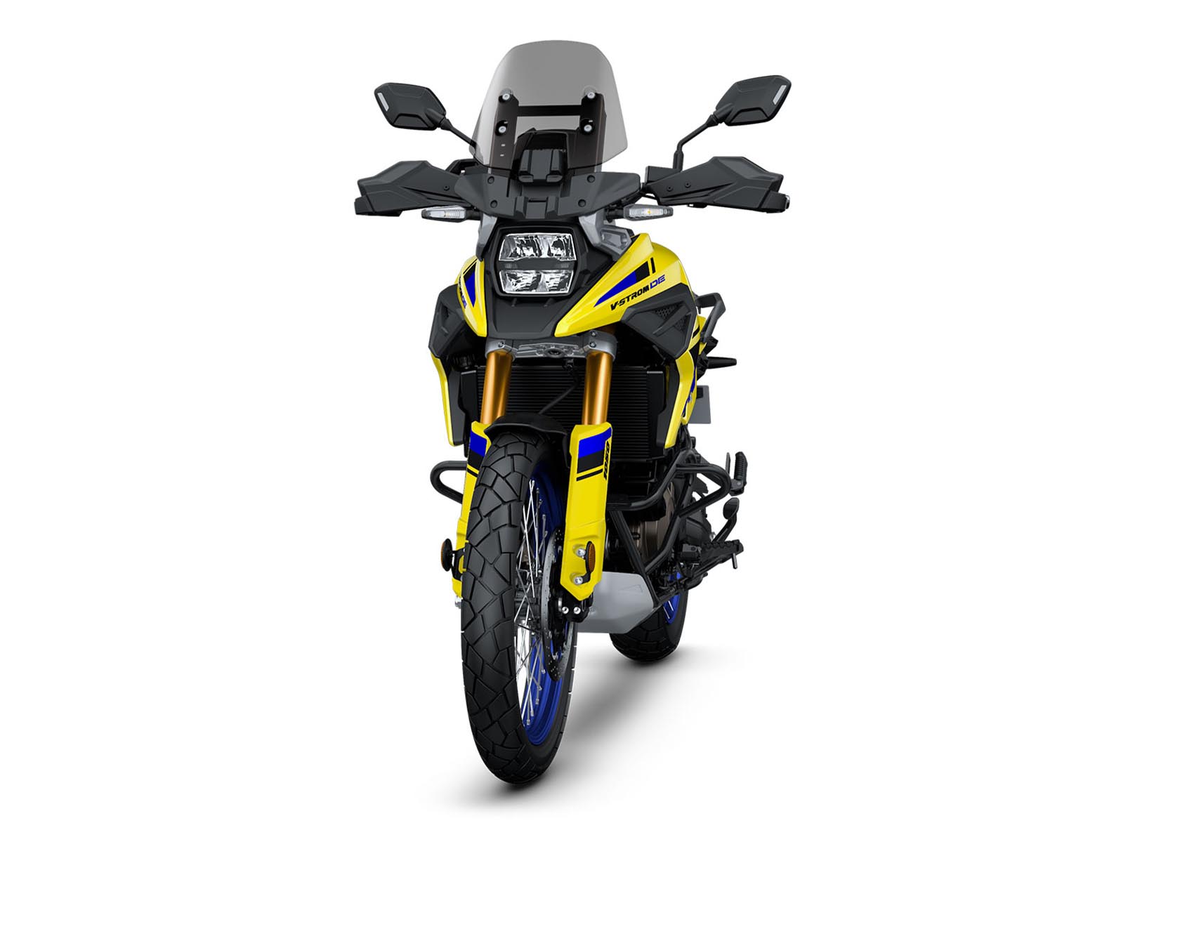 Die V-Strom 1050DE trägt ihre Abenteuerlust selbstbewusst – in leuchtendem Champion Yellow mit blauen Felgen oder sportlichem Pearl Vigor Blue/White mit frischen Kontrasten. Wer lieber unauffällig durchs Unbekannte zieht, wählt das markante Tiefschwarz mit roten Akzenten– eindrucksvoll und entschlossen. Immer dabei: das kürzere, getönte Windschild.