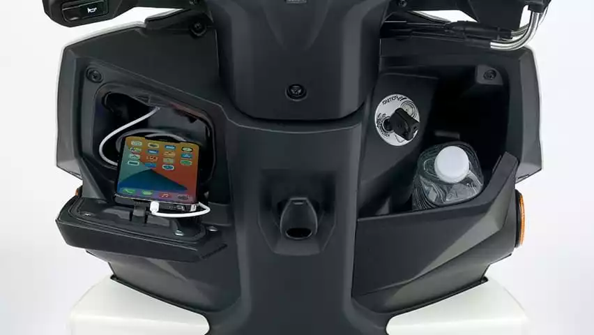 Der Avenis 125 ist nicht nur Dein Sportsfreund, er macht sich auch gerne nützlich. Mit dem 21,5 Liter Stauraum unter der Sitzbank oder den beiden Staufächern vorne. Im linken Fach haben selbst große Smartphones Platz – und einen USB-Anschluss noch dazu.