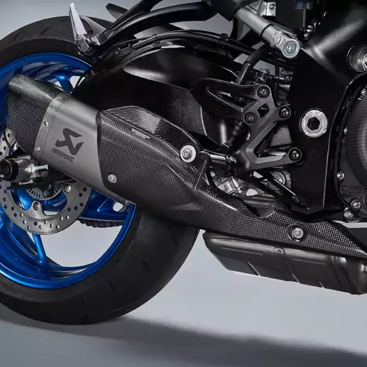 Der Auspuffdämpfer aus Titan erzeugt einen tieferen, volleren und noch sportlicheren Klang. Der Auspuff wurde in Zusammenarbeit mit dem renommierten Hersteller Akrapovič entwickelt. Mit Akrapovič Logo.