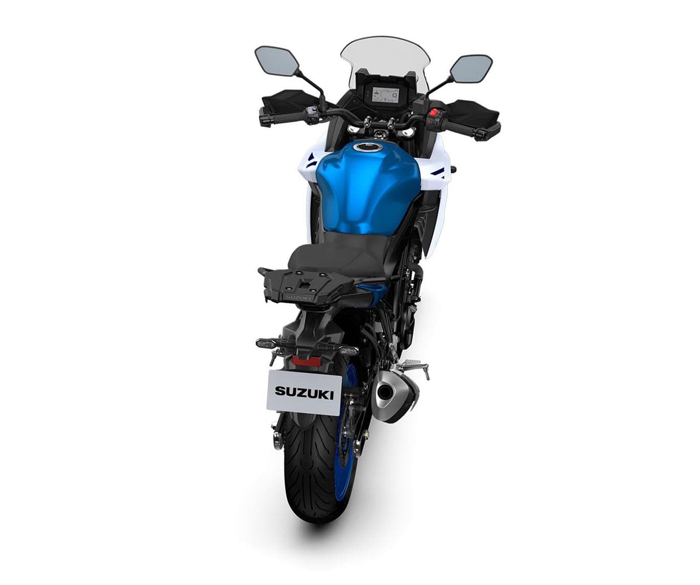 Mithilfe des individuellen Zubehörs kannst du deine SV-7GX zum Langstrecken-Tourer machen. 14 L fasst der Tankrucksack, 45 L das Top Case, die Seitenkoffer jeweils 20 L. Die Gepäckbrücke gehört schon zur Serienausstattung. Dein Fernweh kann kommen.